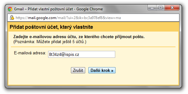 3. Jako e-mailovou adresu zadejte <ID-vaší-datové-schránky>@ispis.cz
